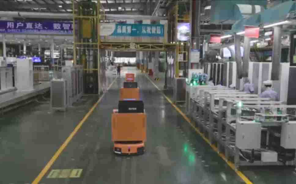 为车载冰箱物流配送打造的智能解决方案,,,包含产中物流通过潜伏举升AMR搬运至线边,,,产后成品物流智能仓储,,流程包含产中物流智能齐套入库,,,线边安灯叫料AMR智能配送至线边,,成品入库、、、出库,,通过无人堆高车机器人,,,智能仓储管理替代人工作业管理,,,实现更高存储、、更高效率、、、更具柔性化的解决方案。。